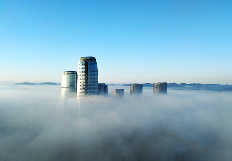 《晨曦 綠港》(榮鑫公司 趙志業(yè))圖片說明:綠港國際中心在晨曦和白霧的襯托下,顯得格外漂亮。