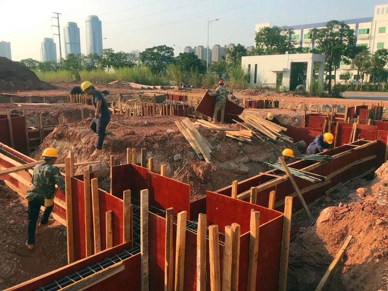瑞聲南寧光學(xué)項(xiàng)目主產(chǎn)高精密手機(jī)鏡頭,包括一體式VCM雙攝、晶圓級(jí)玻璃(WLG)鏡頭、玻塑混合鏡頭等,是瑞聲核心技術(shù)之一,項(xiàng)目的盡快投產(chǎn)對(duì)于瑞聲公司在美國(guó)打壓中國(guó)通訊產(chǎn)業(yè)的大環(huán)境下?lián)屨籍a(chǎn)業(yè)鏈轉(zhuǎn)移先機(jī),搶占市場(chǎng)份額;經(jīng)開區(qū)落實(shí)自治區(qū)強(qiáng)首府戰(zhàn)略、打造千億產(chǎn)業(yè)園等都有著十分重要的意義,是一個(gè)多贏格局。項(xiàng)目計(jì)劃2020年2月上旬正式投產(chǎn)。榮鑫公司在該項(xiàng)目中主要承擔(dān)附屬工程施工,包括設(shè)備用房、污水處理廠房、危品庫(kù)、空壓機(jī)房主體施工及園區(qū)道路、綠化等,是名符其實(shí)的配角,但在項(xiàng)目的前期階段,聚光燈卻始終照在這“配角”的身上。附屬工程中,設(shè)備用房、污水處理廠房等建筑面積共4000平方米,是項(xiàng)目裝修、安裝的基礎(chǔ)工程,投產(chǎn)倒排工期要求2019年12月25日前必須完成并交付安裝單位(道路綠化等配合項(xiàng)目總進(jìn)度,不在此列),工期不足三個(gè)月!該部分用房面積雖不大,且大部分只有兩層,但由于特殊設(shè)計(jì)要求且項(xiàng)目處回填區(qū)域,涉及樁基、深基坑(5.5米)、高支模(8.3米)、防滲防腐等土建施工難點(diǎn)、費(fèi)時(shí)點(diǎn),不可控因素多,給工程按期完工帶來了極大的困難。該部分項(xiàng)目工程量不大,與后期裝修、安裝關(guān)系密切,本應(yīng)由裝修總包單位統(tǒng)一施工,但裝修單位一再推托,坦言不可能完成。最終管委將此部分項(xiàng)目授與了榮鑫公司。此時(shí),裝修、安裝單位在觀望,業(yè)主、建設(shè)主管部門也都在捏把汗。