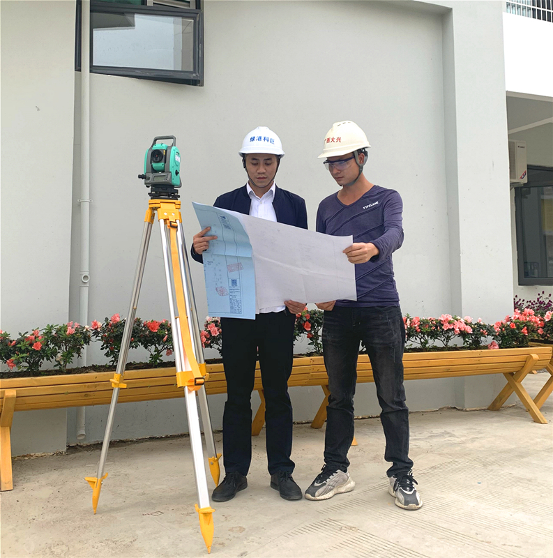 項目建設(shè)初期,受項目場地限制只能安排一臺推土機、挖掘機在項目地塊上推出一條道路,在凹凸不平的菜地之間回填用來建設(shè)項目教學樓以及附屬工程、設(shè)施。面對惡劣環(huán)境,韋密白天指導施工單位管理人員帶著工人們平整場地,搭建臨舍,晚上與項目管理人員共同研究施工計劃、商量趕工方案,安排任務分工,齊心協(xié)力、不等不靠,全力奮戰(zhàn),沒有電就用現(xiàn)場汽油機發(fā)電,沒有水就用市政灑水車供水,一步步攻堅克難,確保項目建設(shè)如期推進。