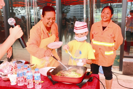 5月28日上午,南寧經(jīng)濟(jì)開發(fā)區(qū)開展“關(guān)愛農(nóng)民工 綠港小廚神”主題親子活動(dòng)。轄區(qū)內(nèi)的園林綠化工人、水電維修物業(yè)工人、保潔人員等300多名進(jìn)城務(wù)工人員及其子女參加了本次活動(dòng)。