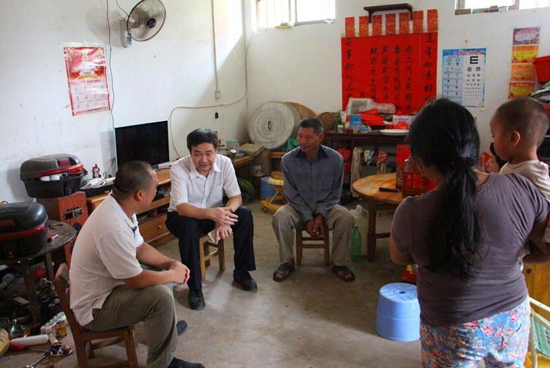 9月7日上午,在河浪村駐村第一書記覃瑞肖和村委會(huì)工作人員的帶領(lǐng)下,綠港集團(tuán)黨委精準(zhǔn)扶貧工作組分為6個(gè)小組,分別慰問了河浪村的26戶貧困戶,分別給貧困戶送去了大米和花生油等慰問品,提前祝他們中秋節(jié)快樂。在貧困戶韋啟揮老人家里,綠港集團(tuán)財(cái)務(wù)總監(jiān)關(guān)月娥親切地與韋啟揮老人拉起了家常?!凹依镉袔桩€地?”“家里甘蔗今年的長勢好不好?”“家里孫兒孫女上學(xué)的學(xué)習(xí)成績好不好?”等等。當(dāng)了解到韋啟揮老人的兒子通過政府針對扶貧小額免息貸款,積極開展產(chǎn)業(yè)化種植,家里的經(jīng)濟(jì)情況在逐步好轉(zhuǎn)時(shí),關(guān)總監(jiān)高興地鼓勵(lì)老人的兒子多開動(dòng)腦筋,創(chuàng)新思路,爭取早日脫貧。在貧困戶梁蔭坎的家中,集團(tuán)公司總經(jīng)理助理黃麗琴親切地與梁蔭坎及其年邁的母親交談,看到梁蔭坎把自己的小樓房收拾得干干凈凈,了解到梁蔭坎的種養(yǎng)業(yè)豐收在即,為他感到高興,同時(shí)告訴他如果在銷路上有什么困難,綠港集團(tuán)將想辦法幫助解決。在貧困戶梁祖然和梁祖旭家里,看到建筑工人正在給他們家蓋房子時(shí),黃總助關(guān)切地詢問是否申請到危改房補(bǔ)助、補(bǔ)助夠不夠等問題,得知蓋房子能領(lǐng)到20000多元的補(bǔ)助資金時(shí),黃總助心里踏實(shí)了好多。在貧困戶盧創(chuàng)旭家里,嘉通公司總經(jīng)理陳志杰與盧創(chuàng)旭一家圍坐在一起,共同探討早日脫貧的道路……這次下村開展精準(zhǔn)扶貧工作,工作組組員們對照“八有一超”的標(biāo)準(zhǔn),認(rèn)真梳理并記錄了對口幫扶貧困戶家庭的實(shí)際情況,為下一步開展精準(zhǔn)扶貧工作做好準(zhǔn)備。