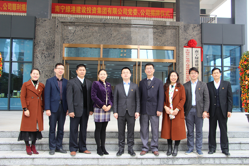 經(jīng)開區(qū)黨工委書記、管委會主任何尚漢,經(jīng)開區(qū)黨工委副書記覃傳財,綠港集團黨委書記、董事長、總經(jīng)理龔國強,綠港集團副總經(jīng)理陸羿冰共同為綠港集團黨委、公司揭牌