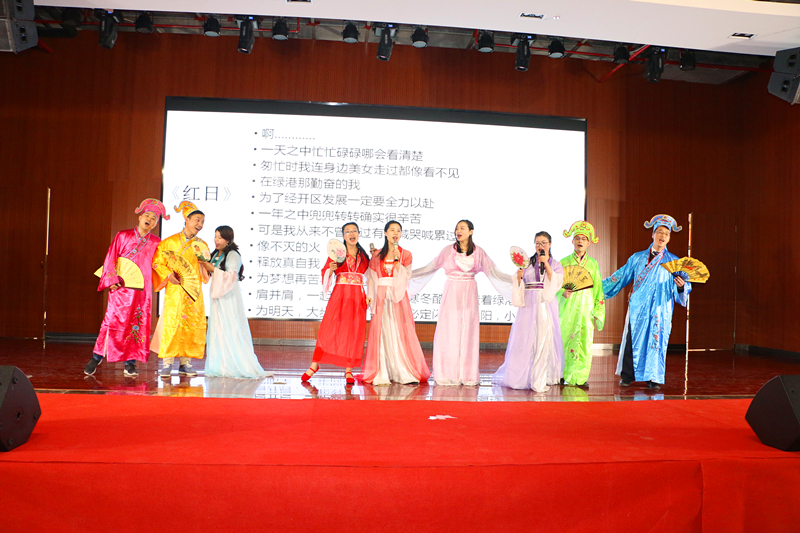 隨后,來自集團(tuán)工程管理部林重胤以及嘉通公司潘青青甜蜜獻(xiàn)唱《告白氣球》,讓大家感受到了愛情的絲絲美好。嘉通公司的《夸夸咱公司》,用三句半的表演形式唱出了綠港集團(tuán)濃濃的企業(yè)文化情愫,也展現(xiàn)了綠港員工積極、拼搏、向上的精神?!段乙鼐G港》、《聲臨其境》、《好運(yùn)來》、《愛》、《好嗨喲》等多個(gè)節(jié)目在觀眾的熱情掌聲中聯(lián)袂奉上一場精彩演出,整個(gè)活動歌聲笑聲、熱烈的掌聲匯成了歡樂的海洋。集團(tuán)營銷管理中心的《四小天王齊賀歲》以及集團(tuán)計(jì)劃運(yùn)營部、紀(jì)檢監(jiān)察審計(jì)部、安全監(jiān)督部聯(lián)合帶來的《蒙面唱將猜猜猜》將活動推向高潮,現(xiàn)場掌聲不斷??彀濉毒G港贊歌》道出了綠港集團(tuán)成立五載,綠港人用智慧和汗水所取得的成效。最后,集團(tuán)領(lǐng)導(dǎo)班子壓軸出場,帶來詩歌朗誦《相信未來》,贏得陣陣掌聲,讓大家堅(jiān)定了信心、鼓足了干勁,對美好生活更加熱愛和向往。