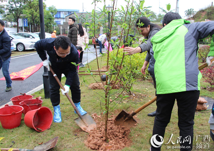 人民網(wǎng)南寧3月11日電 陽春三月,萬物復(fù)蘇,生機(jī)勃發(fā)。3月9日,細(xì)雨紛飛,春寒料峭,但是南寧經(jīng)開區(qū)的綠港·國際中心卻人潮涌動,愛意濃濃。原來,南寧綠港集團(tuán)正在舉行“情暖童心·攜手植綠”學(xué)雷鋒志愿服務(wù)月活動,200多名職工和家屬一起參加了當(dāng)天的愛心義賣、愛心捐贈和義務(wù)植樹活動。