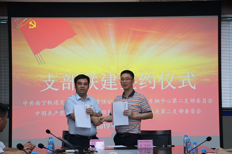 最后,南寧軌道交通集團(tuán)有限公司運(yùn)營(yíng)分公司車(chē)輛中心第二黨支部與綠港集團(tuán)機(jī)關(guān)二支部進(jìn)行黨建聯(lián)盟簽約儀式,并授予了“南寧地鐵黨建聯(lián)盟”牌匾。通過(guò)黨組織的結(jié)對(duì)共建,結(jié)對(duì)雙方將努力實(shí)現(xiàn)“資源共享、優(yōu)勢(shì)互補(bǔ)、互利共贏”的目標(biāo),充分發(fā)揮同盟的綜合效應(yīng),豐富基層黨建內(nèi)涵,促進(jìn)支部黨建工作水平再上新臺(tái)階。