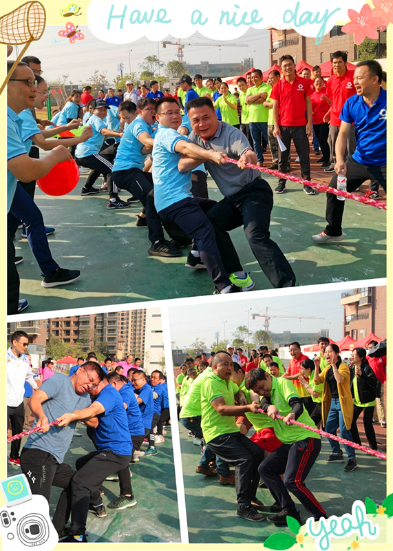 首先開(kāi)始的是拔河比賽,只聽(tīng)裁判員的一聲哨響,現(xiàn)場(chǎng)馬上進(jìn)入到緊張的比賽環(huán)節(jié)。廖勇副主任與集團(tuán)公司領(lǐng)導(dǎo)一道,一馬當(dāng)先打頭陣,對(duì)壘科巨公司隊(duì)。只見(jiàn)這邊運(yùn)動(dòng)員們個(gè)個(gè)咬緊牙關(guān)、目光如炬,臉憋得通紅、手拉得充血,比賽的戰(zhàn)況緊緊地牽動(dòng)著觀(guān)眾們的心,繩子一時(shí)往左一點(diǎn),一時(shí)往右一點(diǎn),在緊張的氛圍中大家聲嘶力竭地給運(yùn)動(dòng)員們加油鼓勵(lì),現(xiàn)場(chǎng)氣氛十分高漲!經(jīng)過(guò)幾輪的比拼,萬(wàn)方公司隊(duì)獲得拔河比賽項(xiàng)目冠軍、科巨公司隊(duì)獲得亞軍、榮鑫公司隊(duì)獲得季軍。