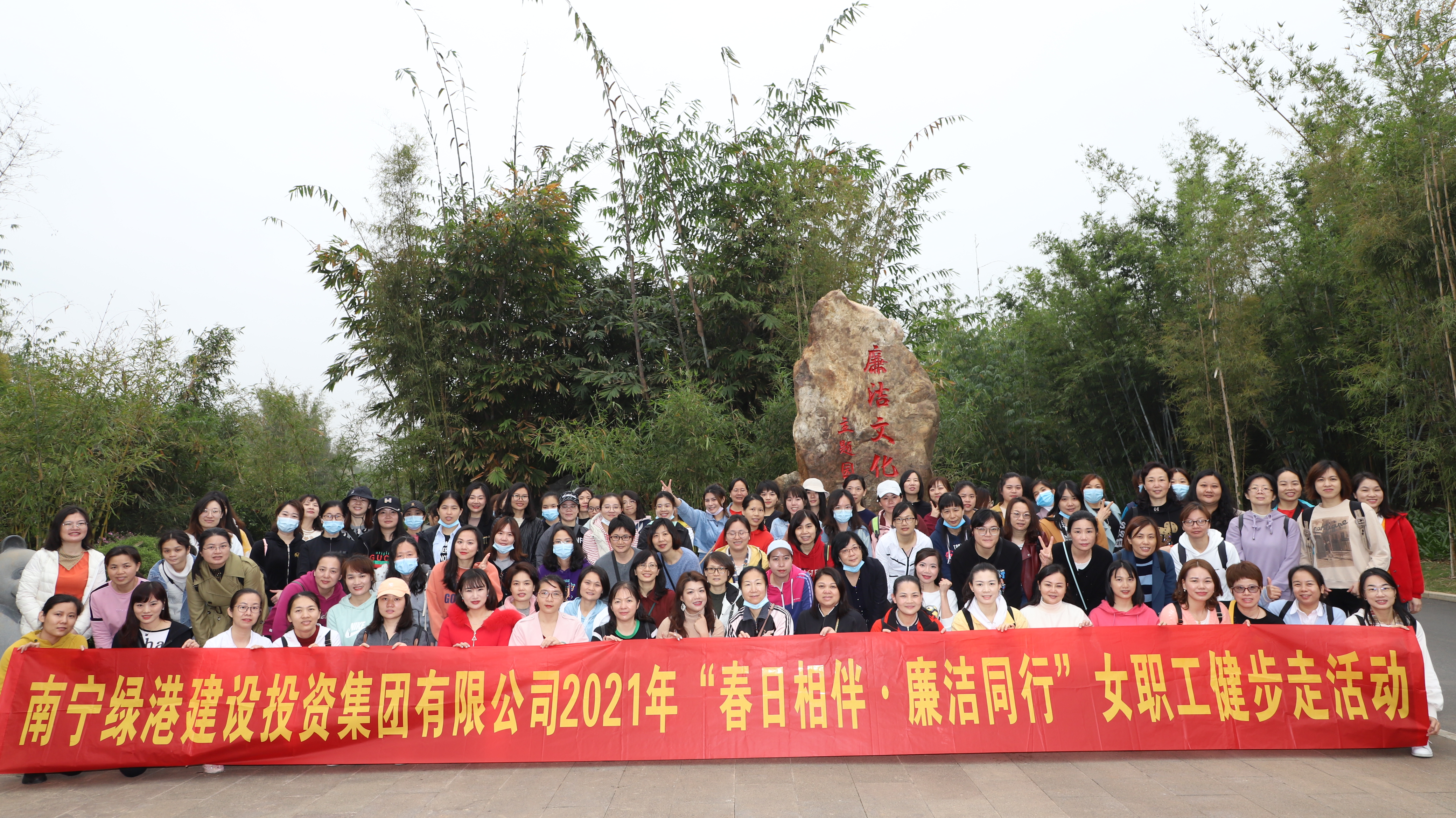 陽春三月,春意盎然。為慶祝第111個“三八”國際婦女節(jié),充分展示婦女職工積極進取、昂揚向上的巾幗風(fēng)采,弘揚“綠色運動”健康理念,倡導(dǎo)健康文明生活方式,3月8日,綠港集團黨委、綠港集團工會、綠港集團女工委在南寧青秀山共同舉辦“春日相伴·廉潔同行”健步走活動。集團公司黨委書記、董事長龔國強,集團公司黨委副書記、總經(jīng)理鄧?yán)^慧,集團公司黨委委員、副總經(jīng)理陸羿冰,集團公司黨委委員、副總經(jīng)理、工會主席黃麗琴,集團公司財務(wù)總監(jiān)關(guān)月娥出席活動。綠港集團全體管理崗位女職工及其親屬約130人參加。