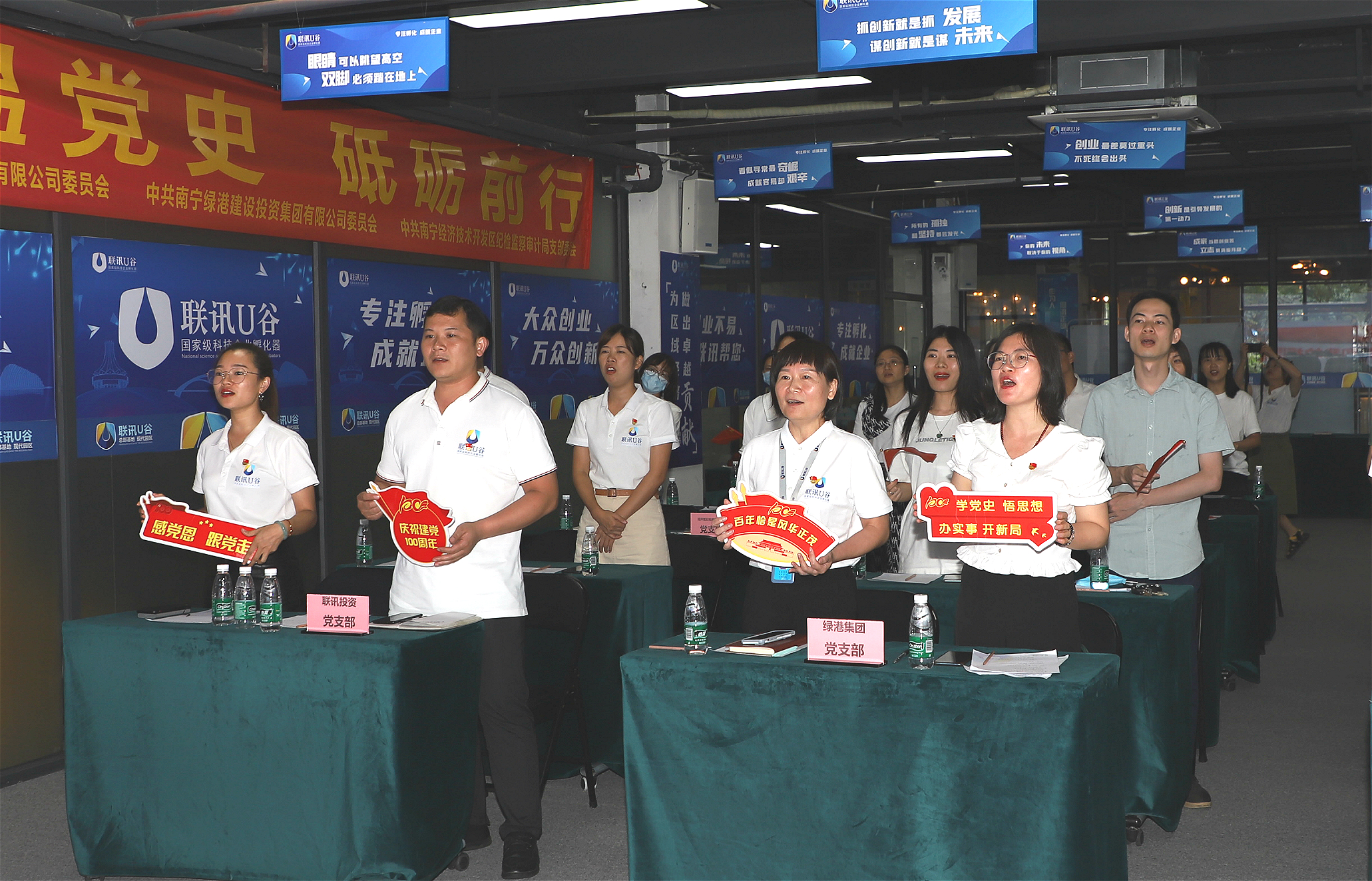 為慶祝建黨100周年,繼承和發(fā)揚(yáng)黨的優(yōu)良傳統(tǒng)和作風(fēng),扎實(shí)推進(jìn)黨史學(xué)習(xí)教育,推動學(xué)習(xí)教育走深走實(shí),5月26日,綠港集團(tuán)黨委、廣西聯(lián)訊黨委、南寧經(jīng)開區(qū)紀(jì)檢監(jiān)察審計(jì)局黨支部聯(lián)合舉辦“重溫黨史 砥礪前行”主題黨建共建活動,綠港集團(tuán)、廣西聯(lián)訊、南寧經(jīng)開區(qū)紀(jì)檢監(jiān)察審計(jì)局的黨員代表、發(fā)展對象、入黨積極分子共35人參加了活動。