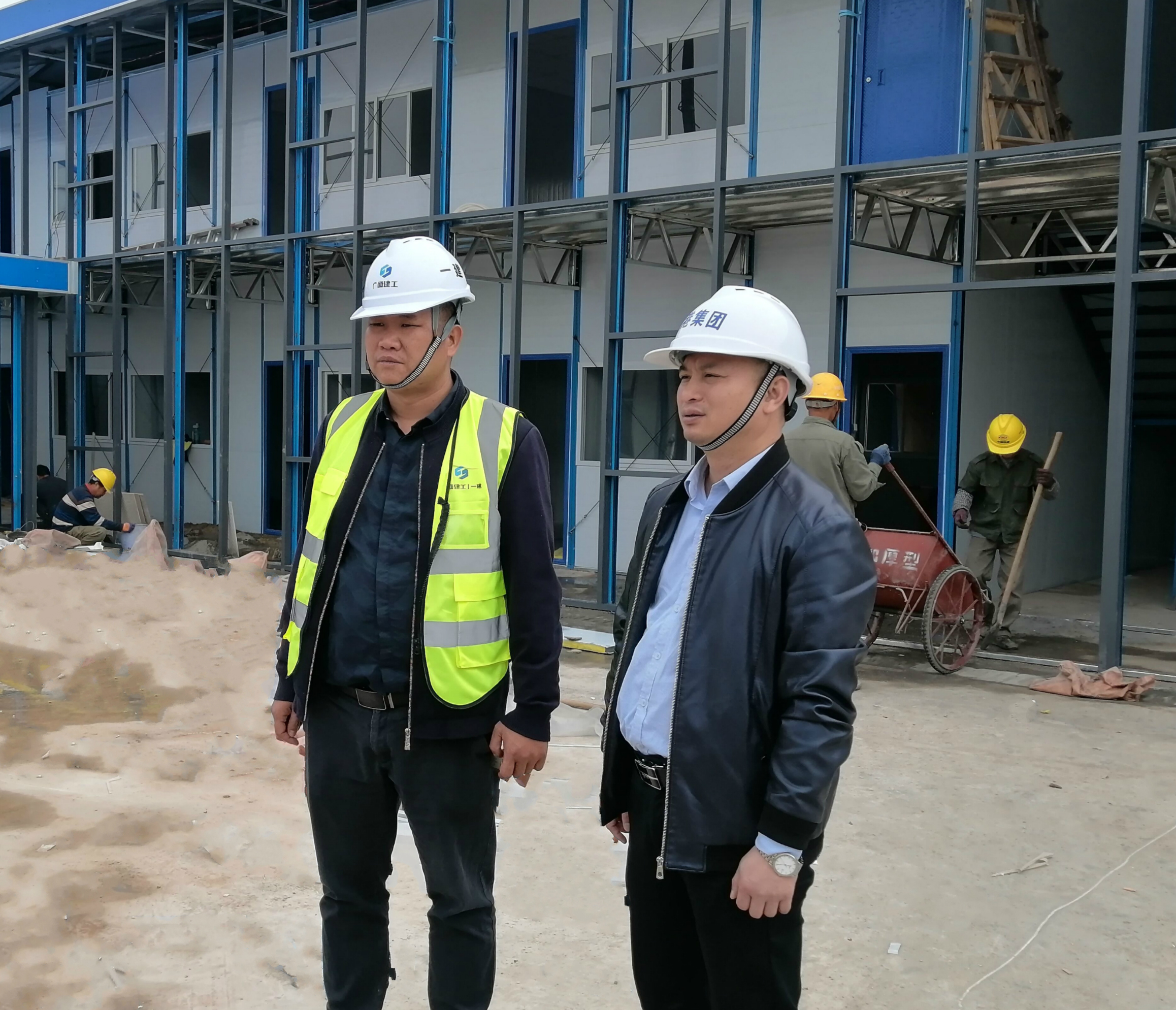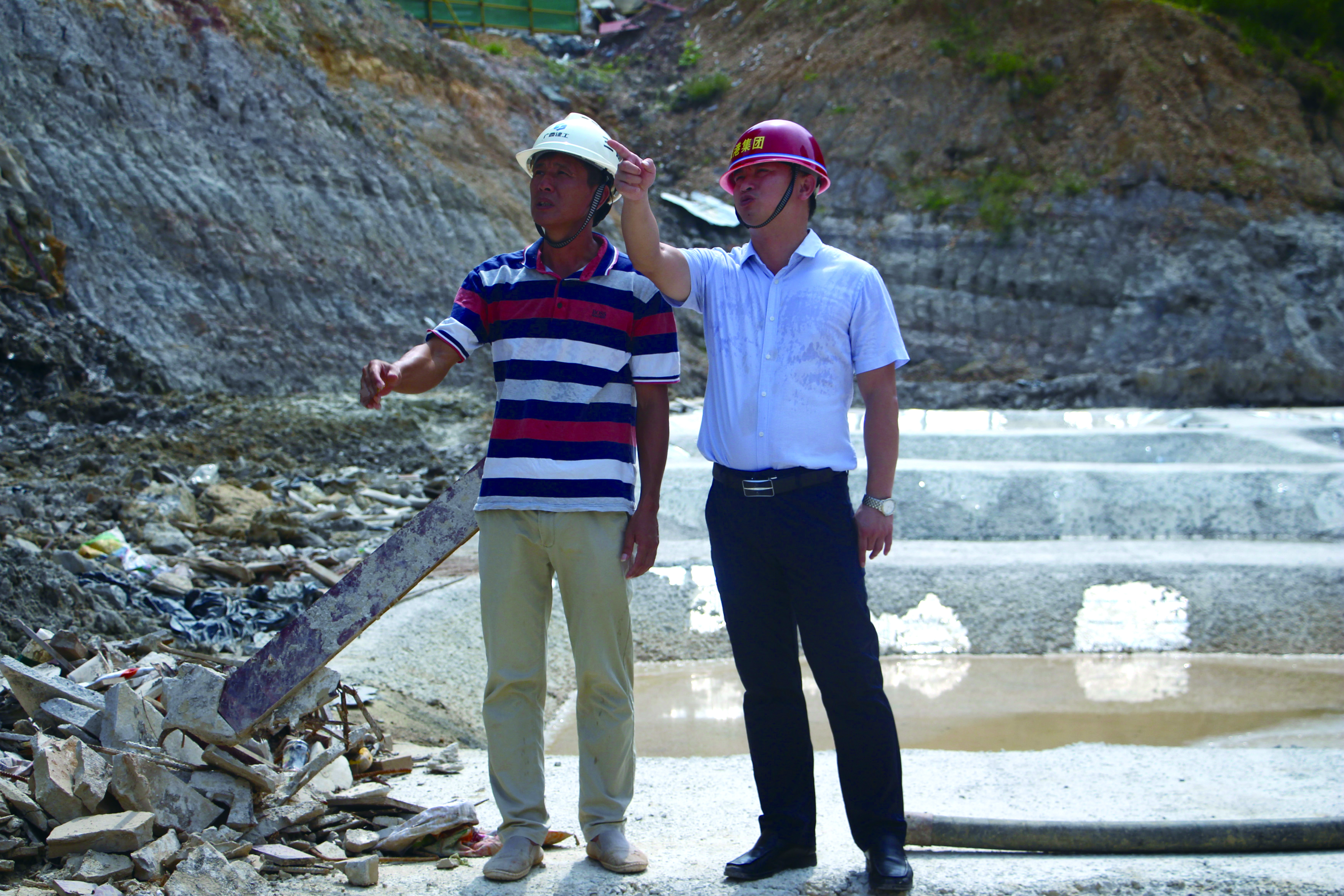 何小勇(右)到現(xiàn)場查看項(xiàng)目進(jìn)度