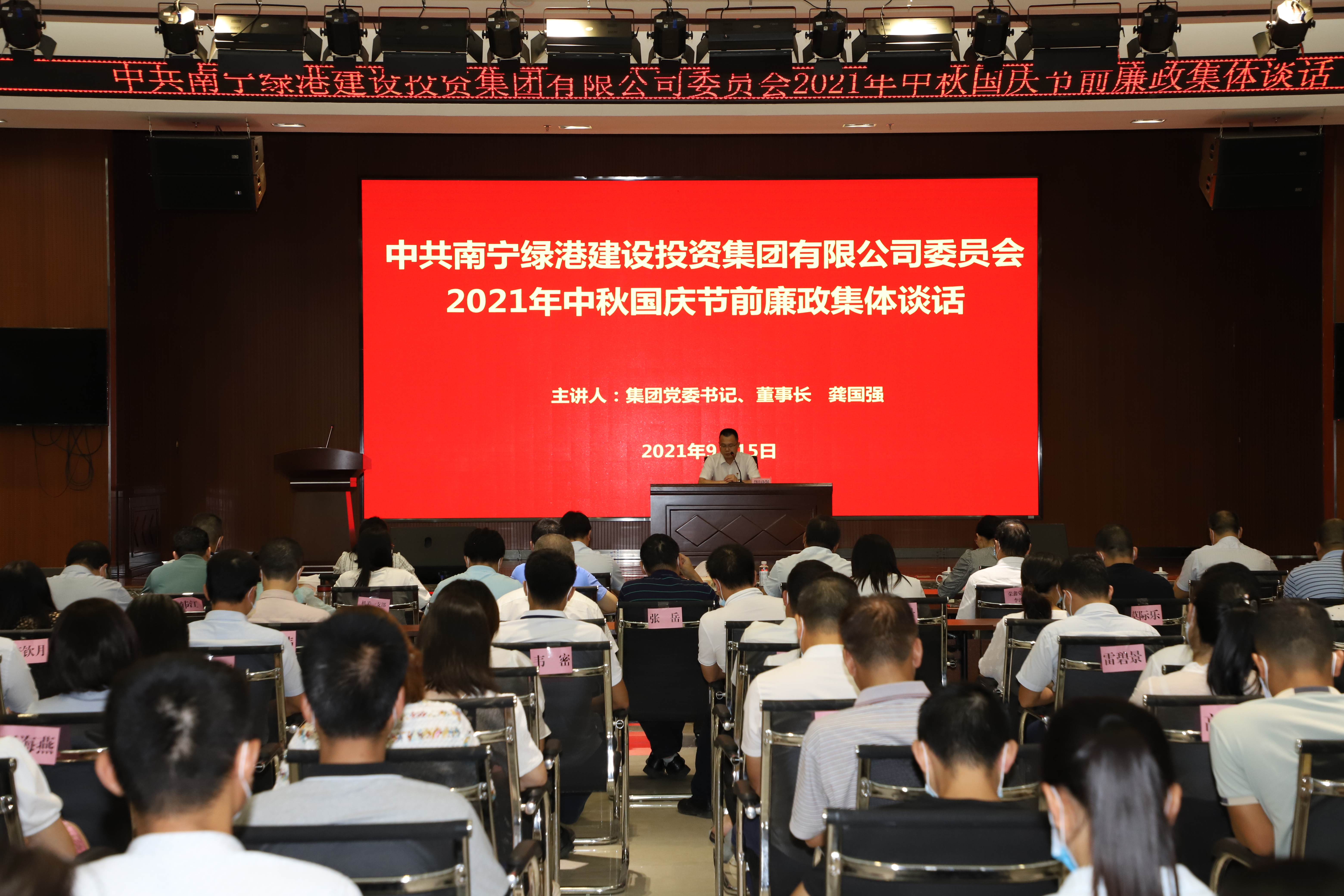 近日,綠港集團(tuán)黨委組織召開2021年中秋國(guó)慶節(jié)前廉政集體談話會(huì)。集團(tuán)黨委書記、董事長(zhǎng)龔國(guó)強(qiáng)出席會(huì)議并作廉政集體談話。集團(tuán)領(lǐng)導(dǎo)班子全體成員、集團(tuán)各部門及各子公司中層副職以上人員參加會(huì)議。