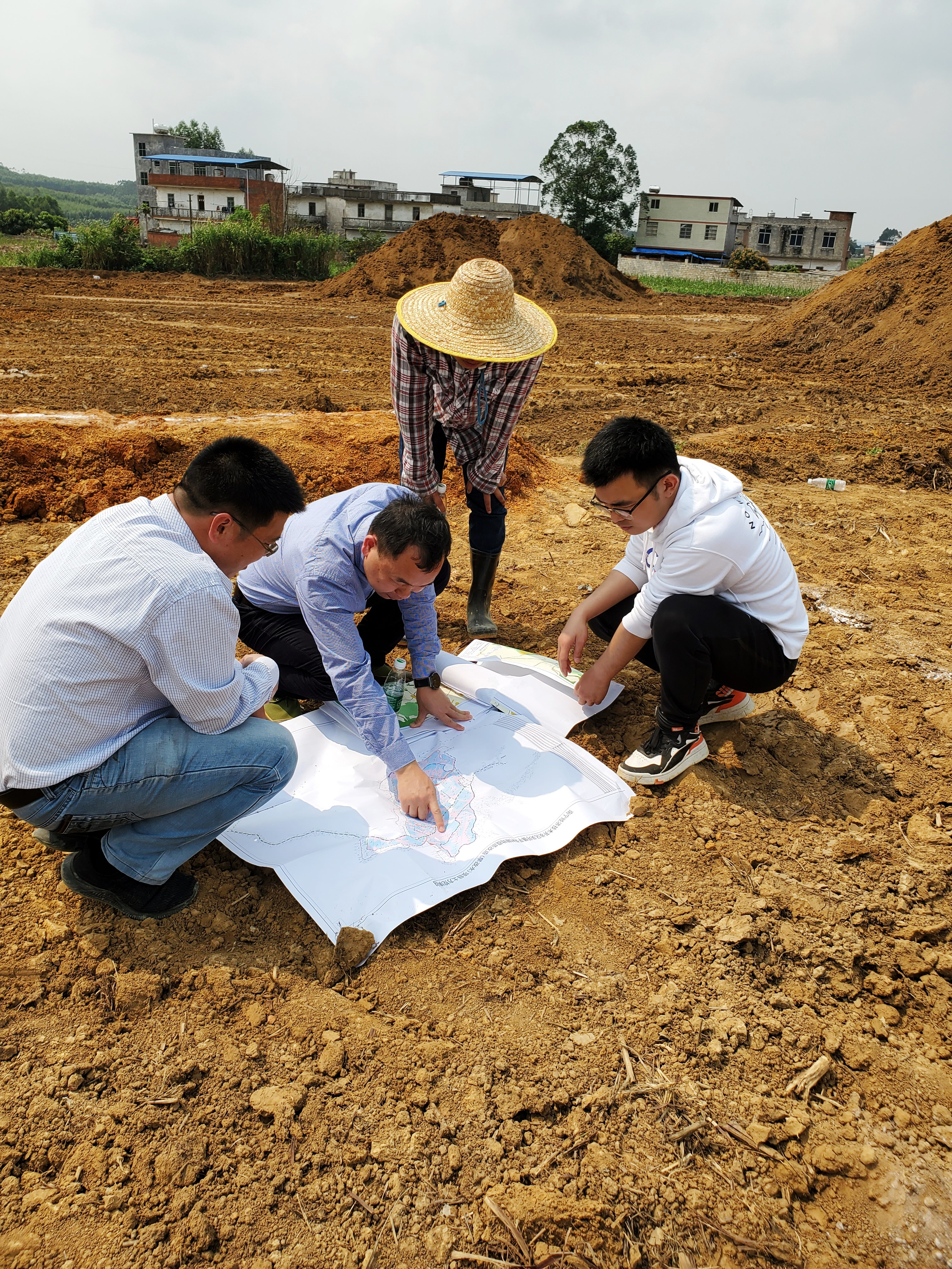 項目勘探初期,科巨公司多渠道開展選址工作,總經(jīng)理覃遠生利用本地人的先天資源優(yōu)勢,積極對接吳圩鎮(zhèn)國土資源所,政企結(jié)合多次走訪吳圩鎮(zhèn)各村委大隊,積極開展旱改水政策宣傳,尋找選址線索。同時以市政二部作為班底,分管副總經(jīng)理莫際樂為組長,市政二部副經(jīng)理張海毅、土建工程師李永華為主力,成立旱改水專項工作小組,走村進寨,跋山涉水,深入田間地頭開展群眾宣講,足跡遍布吳圩鎮(zhèn)的大小村落,山野村林,在自治區(qū)國土測繪院指導下,最終擇優(yōu)選定平垌村作為旱改水項目實施地。