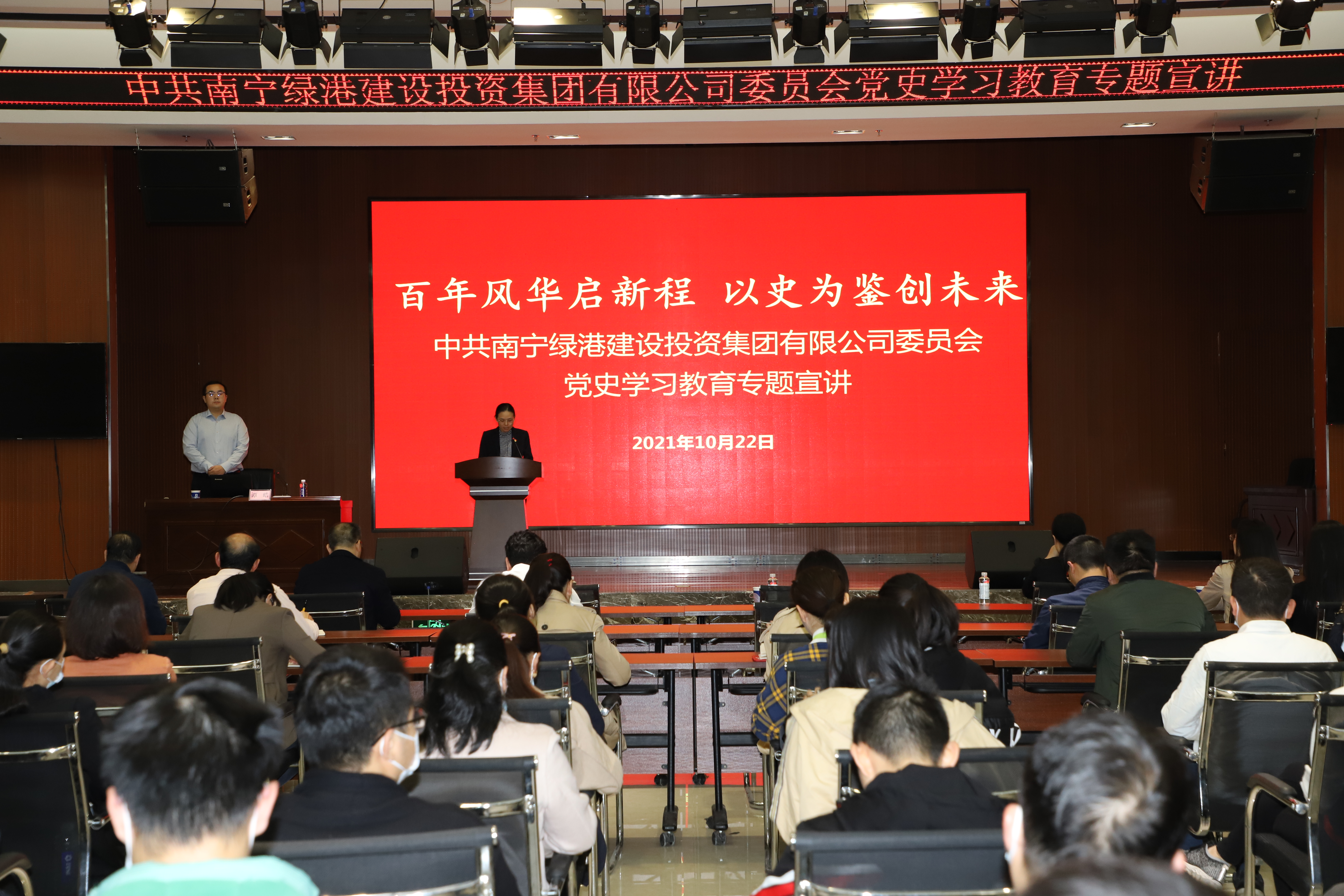為持續(xù)推進(jìn)黨史學(xué)習(xí)教育走深走實(shí),讓廣大黨員干部更加深入理解習(xí)近平總書記在慶祝中國共產(chǎn)黨成立100周年大會(huì)上的重要精神,10月22日,綠港集團(tuán)黨委舉辦學(xué)習(xí)貫徹習(xí)近平總書記“七一”重要講話精神專題宣講會(huì)。此宣講會(huì)由集團(tuán)黨委委員、副總經(jīng)理、工會(huì)主席陸羿冰主持。集團(tuán)公司全體黨員、預(yù)備黨員、積極分子約150人參加宣講會(huì)。