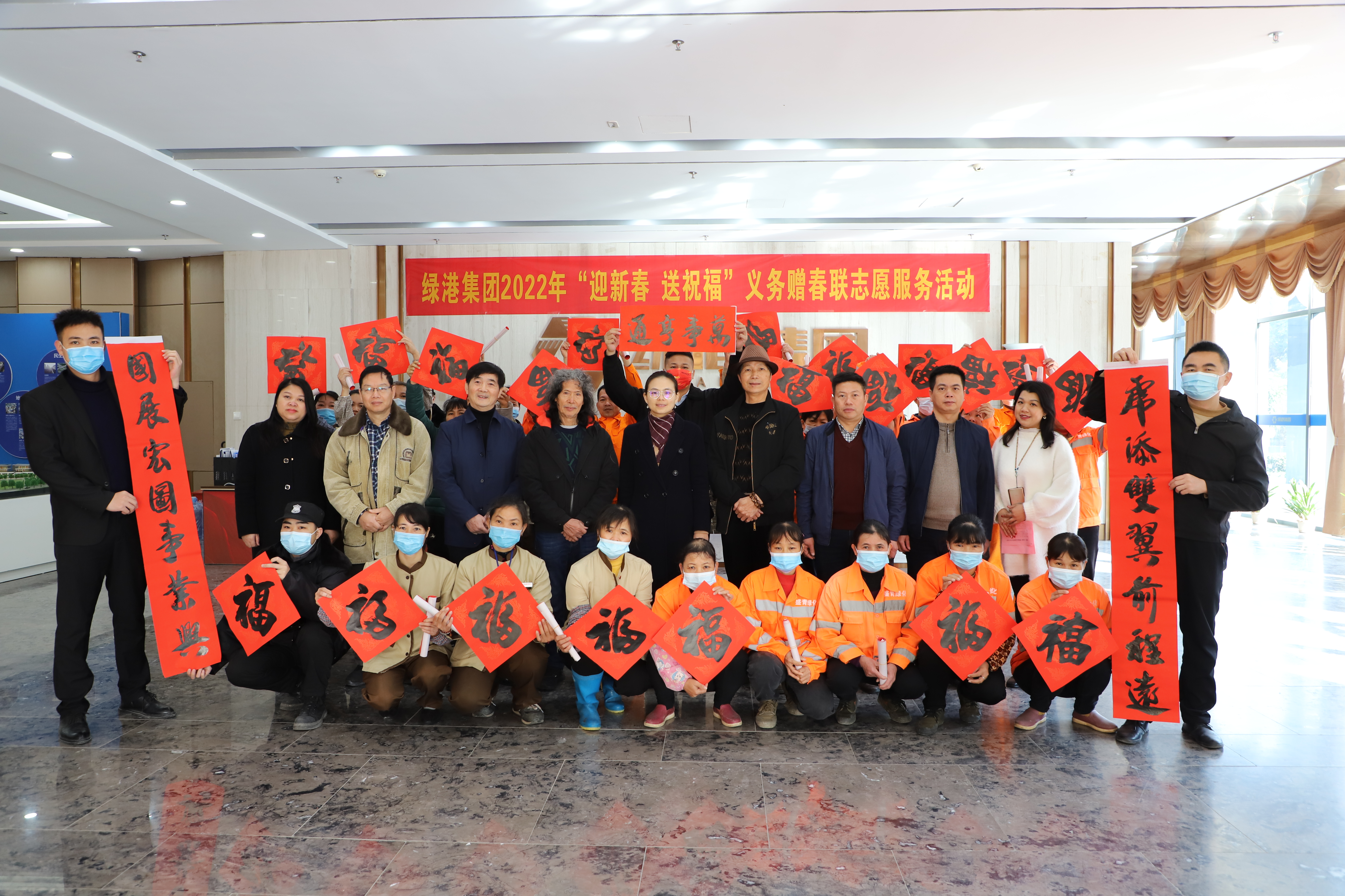 寫春聯(lián)送祝福,濃濃墨香迎新年。為弘揚(yáng)優(yōu)秀傳統(tǒng)文化,營造歡樂祥和、喜慶熱烈的濃厚節(jié)日氛圍,1月17日-19日,綠港集團(tuán)黨委、綠港集團(tuán)工會(huì)組織開展2022年“迎新春·送祝?!绷x務(wù)贈(zèng)春聯(lián)志愿服務(wù)活動(dòng)。