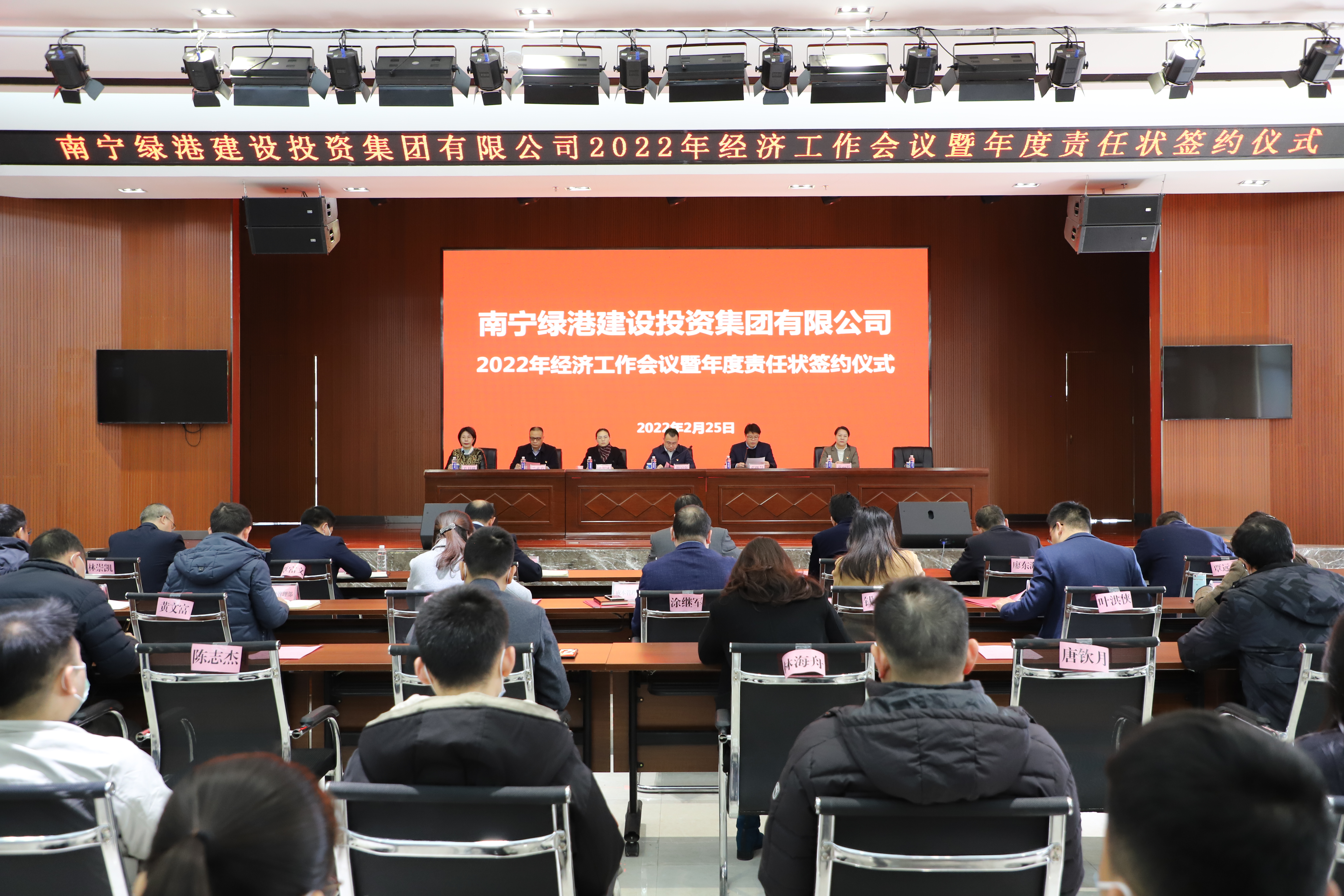 不負春光起好步,乘勢而上開新局。2月25日,綠港集團召開2022 年經濟工作會暨年度責任狀簽約儀式,會議對當前內外部經濟形勢進行分析,并部署2022年工作主要工作任務,與各部門、子公司簽訂年度責任狀。集團領導班子,集團總部各部門全體人員、各子公司中層副職以上人員參加會議。