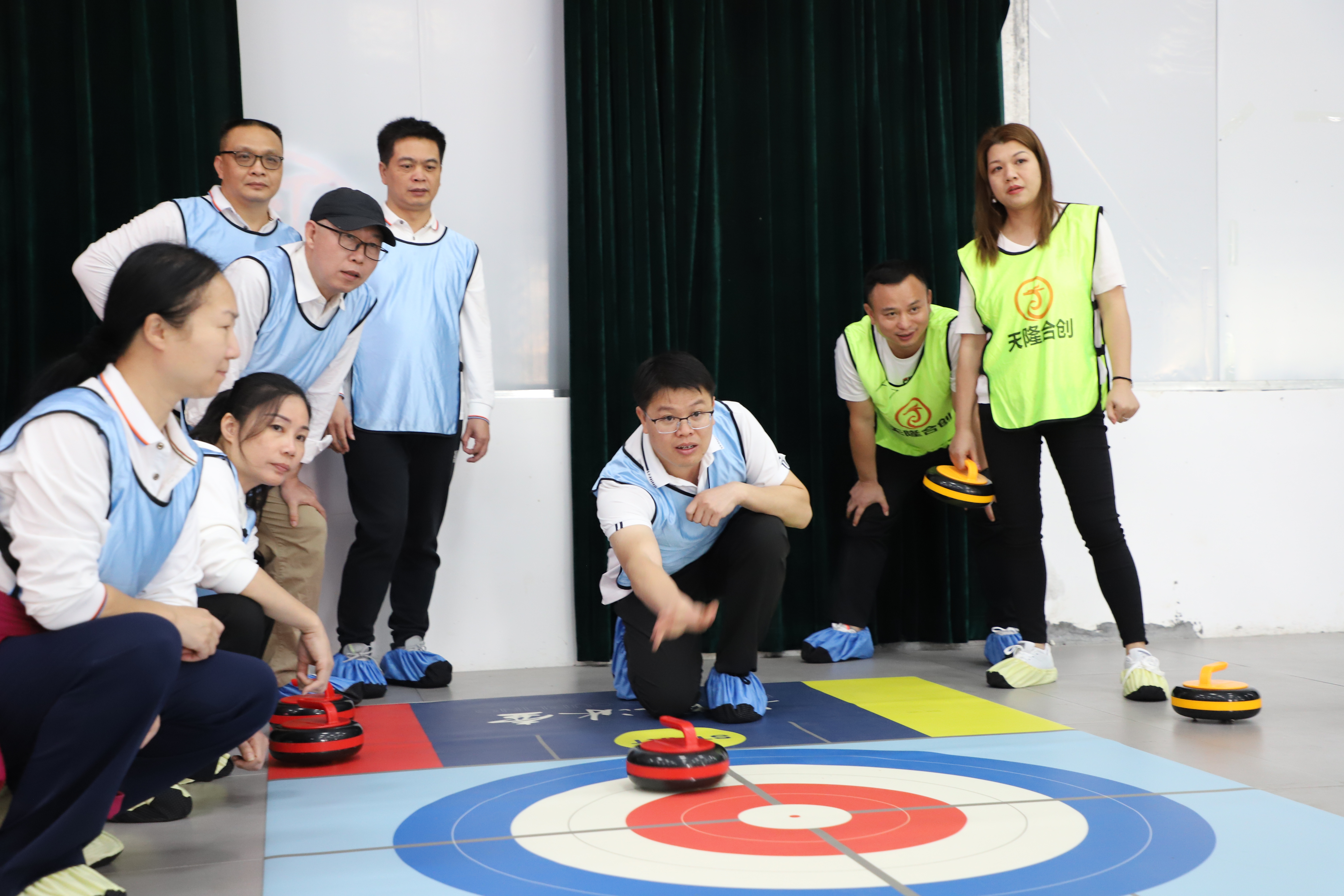 當(dāng)天下午,參訓(xùn)人員分成六個(gè)小分隊(duì)開展了冰壺素質(zhì)拓展比賽。手握把手、單膝觸地、精準(zhǔn)一推……比賽現(xiàn)場(chǎng),選手們?nèi)褙炞ⅲ完?duì)友商討戰(zhàn)術(shù)、默契配合,大家你來(lái)我往、斗智斗勇,每一次冰壺相互碰撞都激起一片歡呼聲和掌聲,充分展現(xiàn)出綠港集團(tuán)中高層管理著積極向上、奮力拼搏、團(tuán)結(jié)協(xié)作的精神風(fēng)貌。