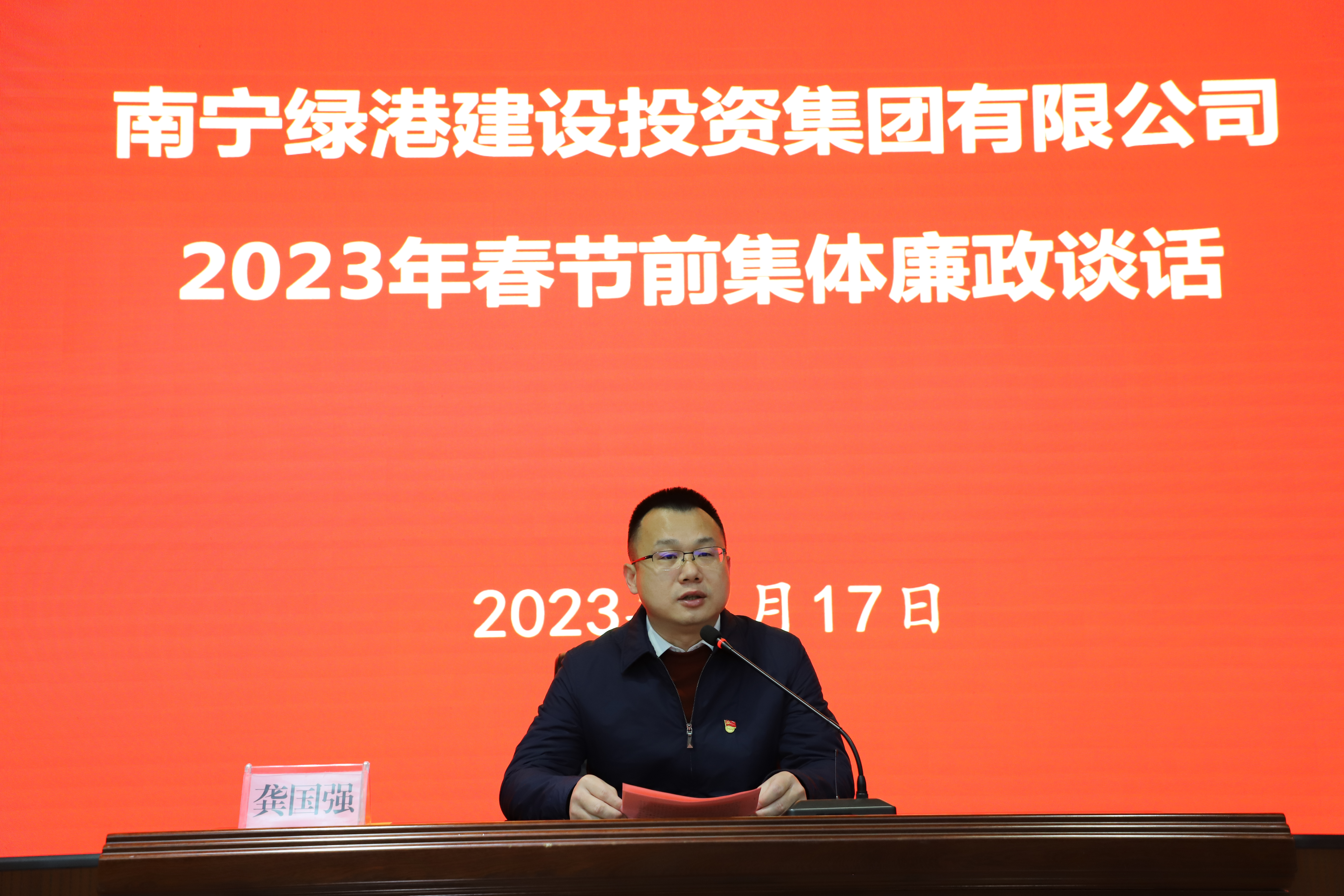 “希望大家帶頭落實(shí)中央八項(xiàng)規(guī)定及其實(shí)施細(xì)則精神,嚴(yán)格遵守廉潔自律各項(xiàng)規(guī)定和‘八嚴(yán)禁’紀(jì)律要求......”1月17日,為進(jìn)一步嚴(yán)明紀(jì)律要求,強(qiáng)化正風(fēng)肅紀(jì),確保風(fēng)清氣正過(guò)節(jié),綠港集團(tuán)黨委組織召開(kāi)2023年春節(jié)前廉政集體談話會(huì),為干部職工送上了一道精心定制的節(jié)前廉潔“開(kāi)胃菜”。綠港集團(tuán)黨委書(shū)記、董事長(zhǎng)龔國(guó)強(qiáng)出席會(huì)議并講話,集團(tuán)領(lǐng)導(dǎo)班子全體成員,集團(tuán)公司各部門(mén)及各子公司全體干部職工參加會(huì)議。