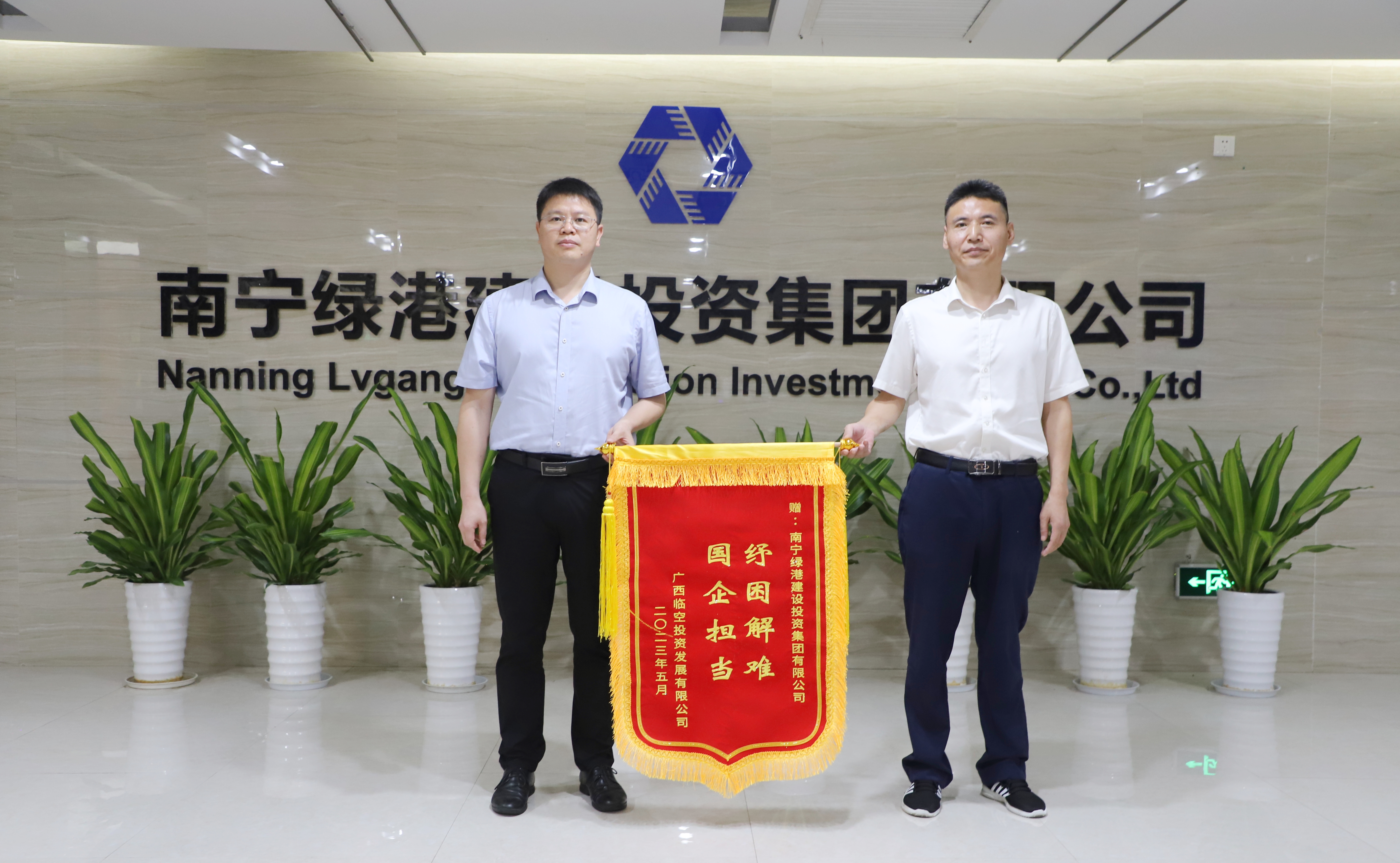 “請允許我們代表南寧零公里空港產(chǎn)業(yè)園業(yè)主單位、運營單位、物業(yè)單位及園區(qū)租戶對經(jīng)開區(qū)管委會長期以來對企業(yè)的關(guān)心和幫助,對綠港集團的鼎力支持表示衷心的感謝和崇高的敬意!”5月25日上午,廣西臨空投資發(fā)展有限公司董事長張亞帶隊來到綠港集團,送來一面寫有“紓困解難 國企擔當”的錦旗和感謝信,字里行間飽含著企業(yè)的真摯感情,感激之情溢于言表。