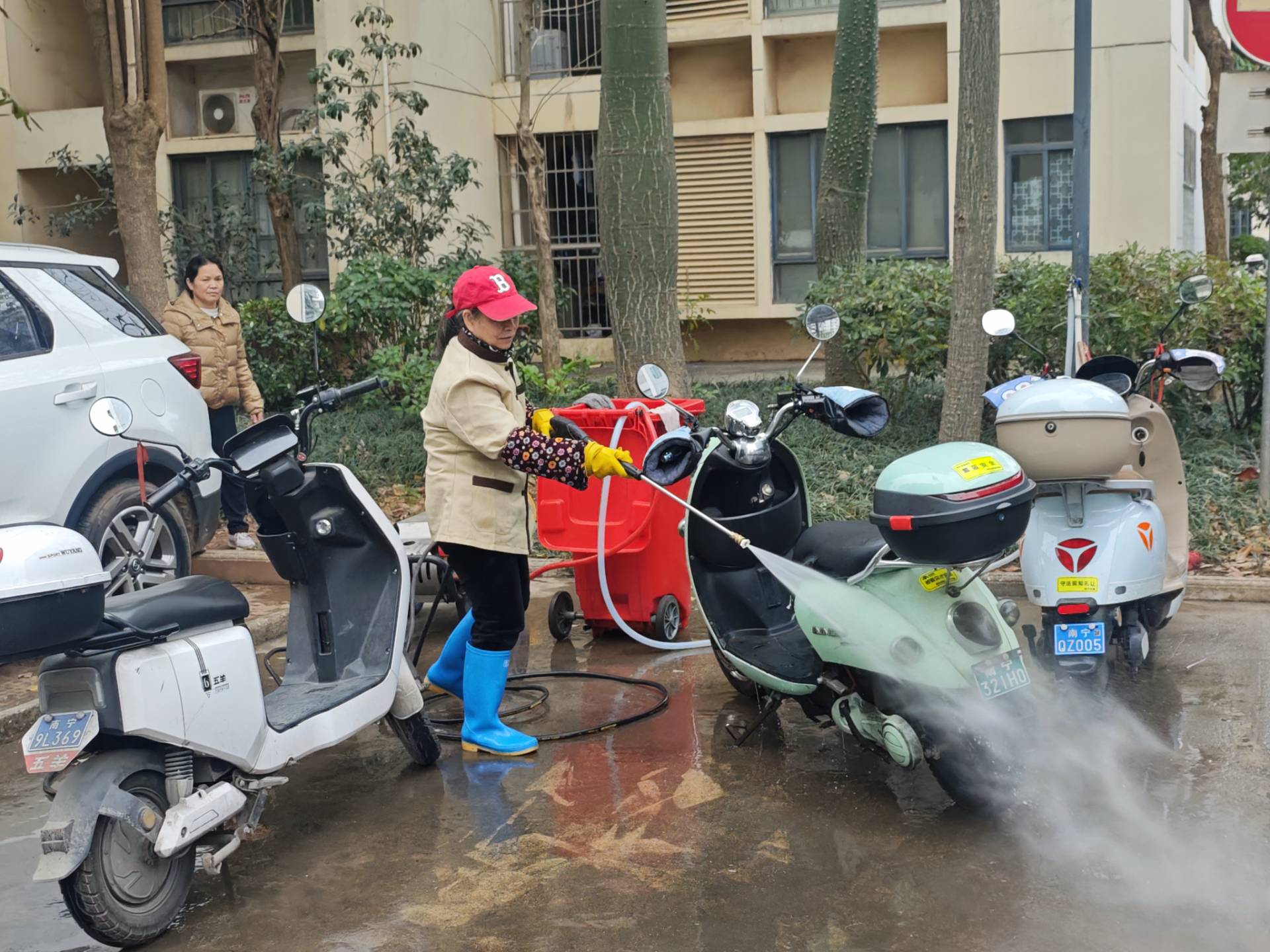 活動(dòng)現(xiàn)場,50余名紅馬甲志愿者猶如點(diǎn)點(diǎn)星火,匯聚成照亮金凱工業(yè)園的璀璨光芒,他們面對(duì)面為入園企業(yè)及公租房住戶搭建起“一站式惠民服務(wù)長廊”,為社區(qū)志愿者們進(jìn)行網(wǎng)絡(luò)防詐、垃圾分類、基本醫(yī)療保險(xiǎn)、消防安全等宣傳;入園醫(yī)療企業(yè)志愿者們,現(xiàn)場進(jìn)行針灸及免費(fèi)基礎(chǔ)藥物領(lǐng)?。磺嗄曛驹刚邆兩钊雸@區(qū)項(xiàng)目廠房,開展場地清掃及閑置物資清理工作;中醫(yī)問診的臺(tái)前排起長龍,義務(wù)理發(fā)師的剪刀翻飛,家電修理小鋪堆滿了待修的小家電,電動(dòng)車清洗處一輛輛電動(dòng)車排隊(duì)沖洗,現(xiàn)場人潮涌動(dòng),居民們交口稱贊。這場春日文明行動(dòng),不僅提升了綠港集團(tuán)“四個(gè)一線”黨建品牌影響力,更在每位參與者心中種下了向上向善的種子。參與的同志們紛紛表示將傳承好雷鋒精神,以實(shí)際行動(dòng)踐行社會(huì)主義核心價(jià)值觀,讓奉獻(xiàn)友愛之風(fēng)吹遍集團(tuán)發(fā)展的每個(gè)角落。