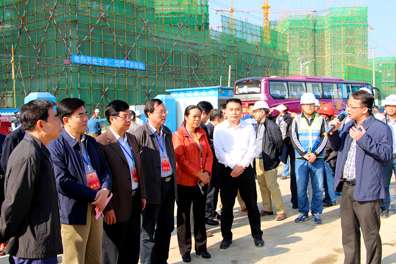 視察組一行在經(jīng)開區(qū)管委會辦公區(qū)聽取管委會全年工作匯報后,首先來到自治區(qū)為民辦實(shí)事棚戶區(qū)改造項目——新港家園項目現(xiàn)場調(diào)研指導(dǎo)工作。綠港集團(tuán)黨委書記、董事長、總經(jīng)理楊東向人大代表們匯報了新港家園項目建設(shè)情況,他說,新港家園作為自治區(qū)為民辦實(shí)事統(tǒng)籌推進(jìn)的棚戶區(qū)改造項目,承擔(dān)著經(jīng)開區(qū)吳圩鎮(zhèn)被征地拆遷農(nóng)民的安置任務(wù),事關(guān)空港經(jīng)濟(jì)區(qū)建設(shè)發(fā)展的大局。綠港集團(tuán)作為建設(shè)業(yè)主,積極貫徹落實(shí)自治區(qū)、南寧市、經(jīng)開區(qū)相關(guān)決策部署,根據(jù)“讓利于民、統(tǒng)一規(guī)劃、統(tǒng)一建設(shè)”總體開發(fā)思路,充分發(fā)揮綠港鐵軍精神,通過創(chuàng)新項目管理模式,抽調(diào)精干力量,狠抓工程質(zhì)量,快速有序的推進(jìn)項目建設(shè)工作。