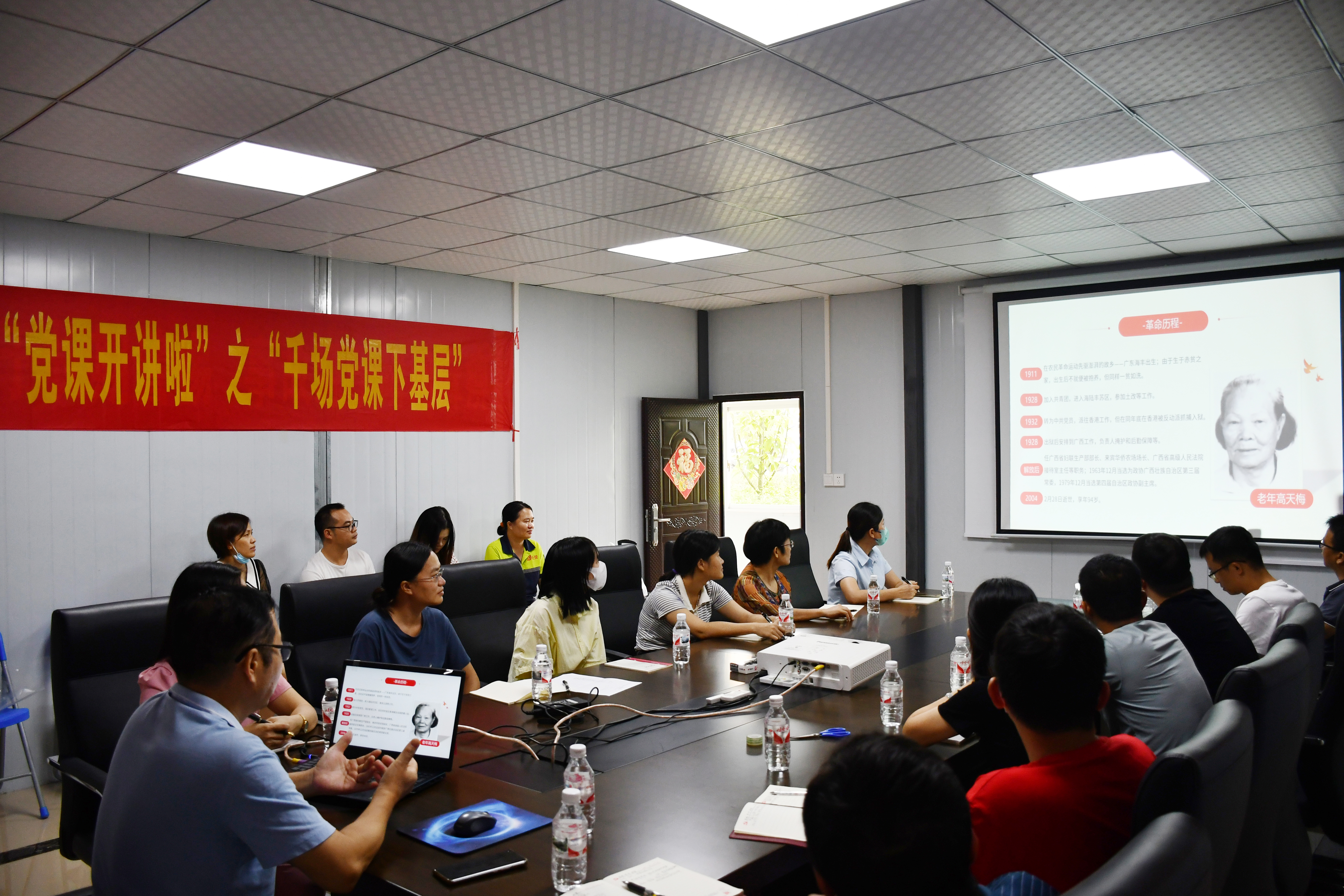 9月29日,為持續(xù)推進(jìn)“將《紅色傳奇》進(jìn)行到底”系列活動(dòng),深入貫徹落實(shí)基層黨建“五基三化”攻堅(jiān)年行動(dòng)部署,積極響應(yīng)經(jīng)開(kāi)區(qū)“黨課開(kāi)講啦”之“千場(chǎng)黨課下基層”的號(hào)召,榮鑫公司黨支部聯(lián)合廣西長(zhǎng)榮混凝土有限責(zé)任公司黨支部,前往長(zhǎng)榮公司吳圩混凝土攪拌站,開(kāi)展“將紅色傳奇進(jìn)行到底 揚(yáng)先輩精神再立新功”主題活動(dòng)。榮鑫公司黨支部書(shū)記李汝埠為榮鑫公司、萬(wàn)方公司、長(zhǎng)榮公司的黨員干部及一線作業(yè)人員送去一堂題為《高山一枝梅 暗香天地間》的黨課,生動(dòng)講述了被譽(yù)為“廣西阿慶嫂”的原廣西政協(xié)副主席高天梅同志革命奮斗一生的“紅色傳奇”。